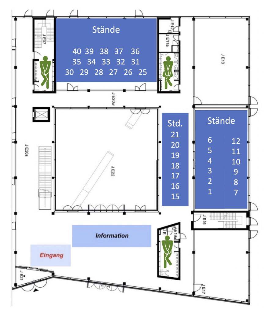 Schau dich einfach um und sprich die Personen an den Ständen an – oder navigiere dich durch die Angebote und bewirb dich mit einem Klick …